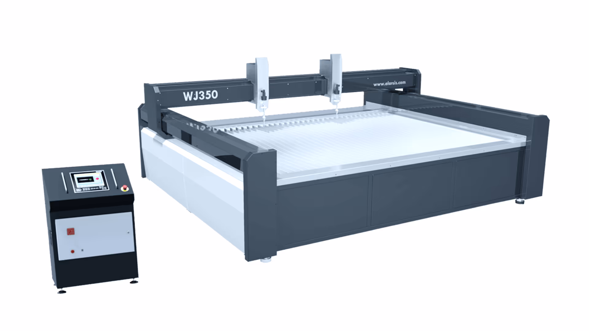 Das neue Modell Alarsis WJ 350 ist für eine hohe Produktionsleistung beim Schneiden verschiedenster Materialien mittels Wasserstrahl konzipiert, wahlweise mit einem oder zwei Köpfen für reines Wasser oder Abrasivmittel. Die Kombination aus den WJ-Modellen und den Hochdruckpumpen der ersten Marke KMT gewährleistet ein herausragendes Schnittleistungsniveau.